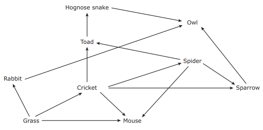 The flow of energy in a grassland ecosystem is shown.