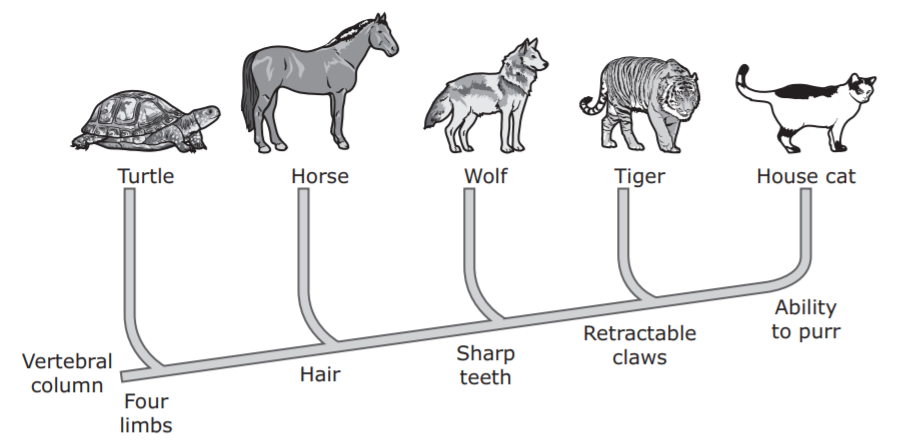 A cladogram of five species is shown.