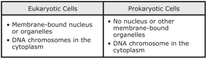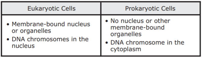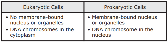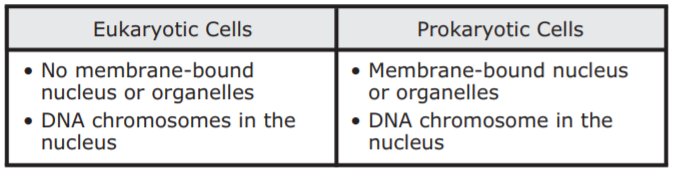 Students created note cards comparing characteristics of eukaryotic and prokaryotic cells. Which set of note cards most accurately compares these cells?