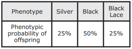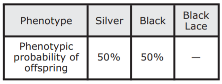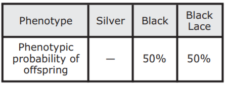 Which table shows the expected phenotypes of offspring resulting from a cross between a black angelfish and a black-lace angelfish?