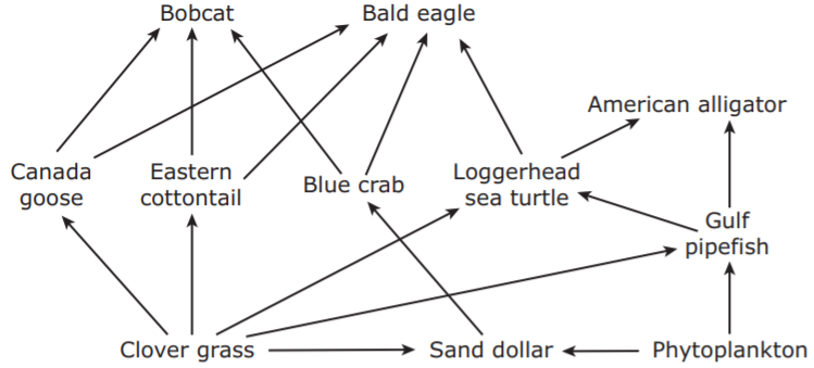 A food web representing a Gulf Coast ecosystem is shown.