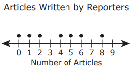 The list shows the number of articles written by different reporters at a newspaper last month.