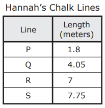 Hannah drew straight lines on her driveway with chalk. The table shows the lengths of the lines.