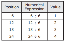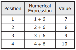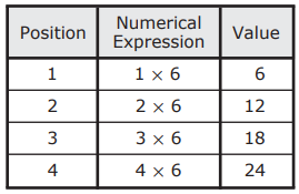 Which table correctly represents the relationship between the position of a number in the pattern and the value of that number?