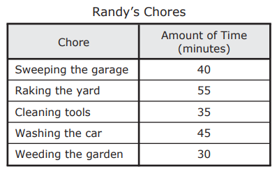 The table shows the chores Randy did Saturday morning and the amount of time he spent on each chore.