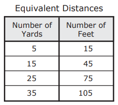 The table shows different numbers of feet and the equivalent numbers of yards.