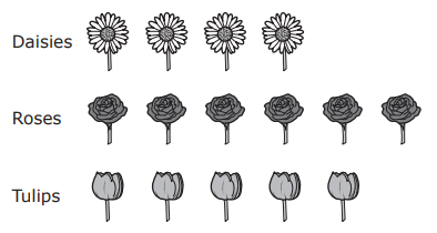 Which expression can be used to find the fraction of flowers in the vase that are daisies or tulips?