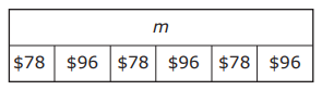 A business earned $96 for one job and $78 for a second job. The money was divided equally among the 3 partners who own the business.
