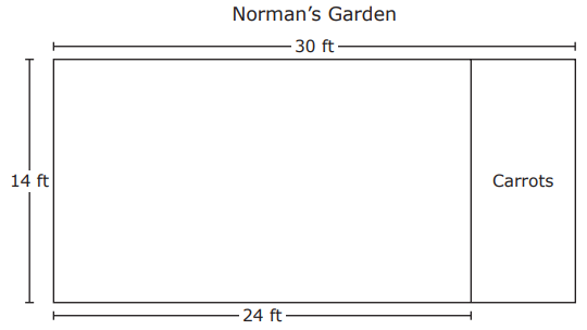 The model represents Norman’s rectangular backyard garden. Norman will plant carrots in the rectangular section of the garden labeled “Carrots” in the model.