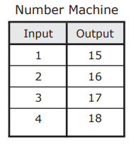The table shows a relationship between the input numbers and the output numbers generated by a number machine.