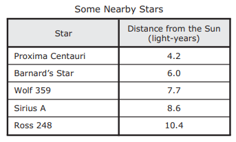 Based on the table, a student used a measuring tape to model the distances between the sun and these nearby stars. The sun was at the starting point. Proxima Centauri was at the 10 m mark.