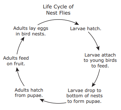 Darwin’s finches are a group of seed-eating bird species found on the Galápagos Islands. Nest flies are a type of insect that has become a threat to the finches. The diagram shows the life cycle of the nest fly.