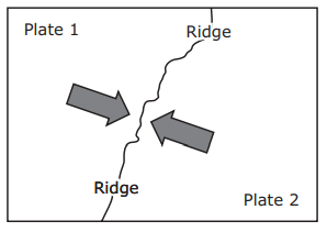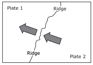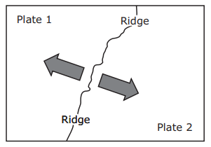 A mid-ocean ridge is located at the boundary of two tectonic plates. Which diagram correctly models the relative plate motion on each side of a mid-ocean ridge?