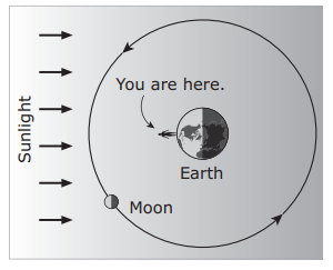 Which picture shows how the moon appears from Earth when it is in the position shown in this model?