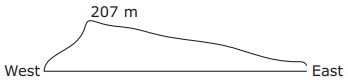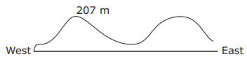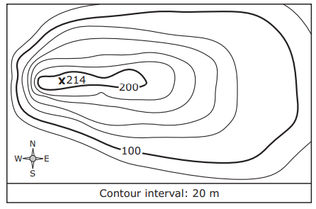 This topographic map represents the elevation of an area 100 years ago. At that time the highest point had an elevation of 214 m. The highest point has since eroded a total of 7 m.
