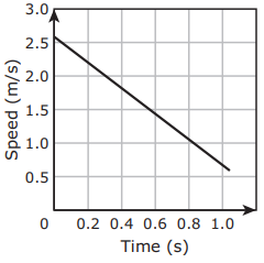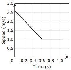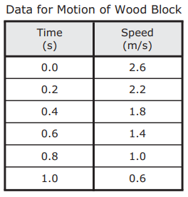 Students slid a small wood block along a flat tabletop for a distance of 1.6 m. The data show the motion of the block of wood.