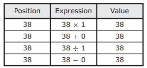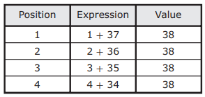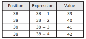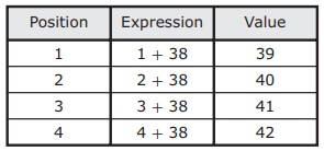The rule +38 is used to show the relationship between the position of a number in a pattern and the value of that number. Which table shows this relationship?