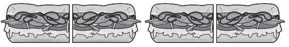 Mrs. Owen ordered two foot-long sandwiches for her three children to share. The picture shows the two sandwiches cut in half. Each child ate half a sandwich.