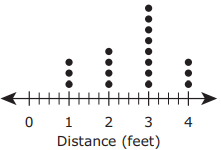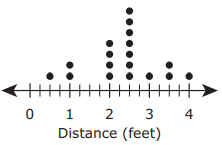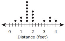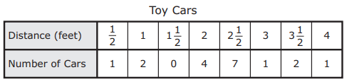 Students pushed toy cars to see how far they would roll. The table shows the number of cars that rolled different distances.