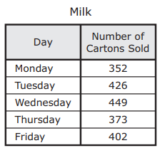 The table shows the number of cartons of milk the school cafeteria sold each day last week.