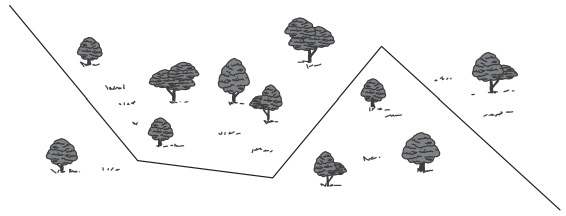 Which measurement is closest to the total length in centimeters of the walking trail shown in the diagram?