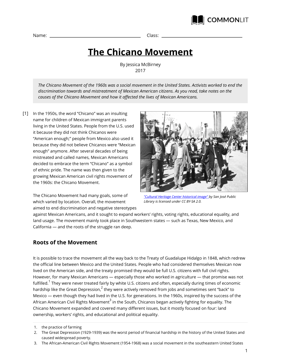 Which choice best describes the nature of the relationship between The Chicano Movement & The Civil Rights Movement.