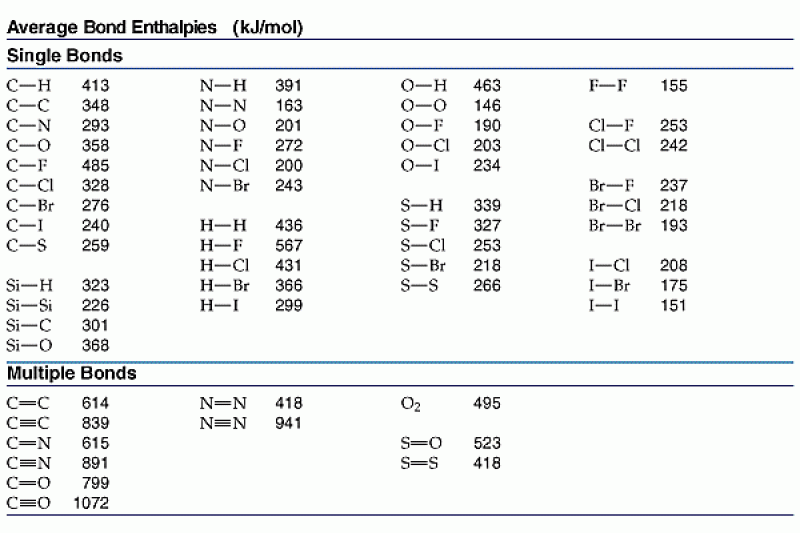 Below is a table that shows the amount of energy needed to break each type of bond.