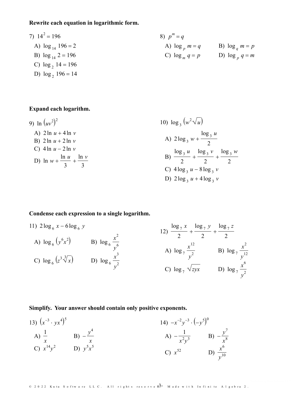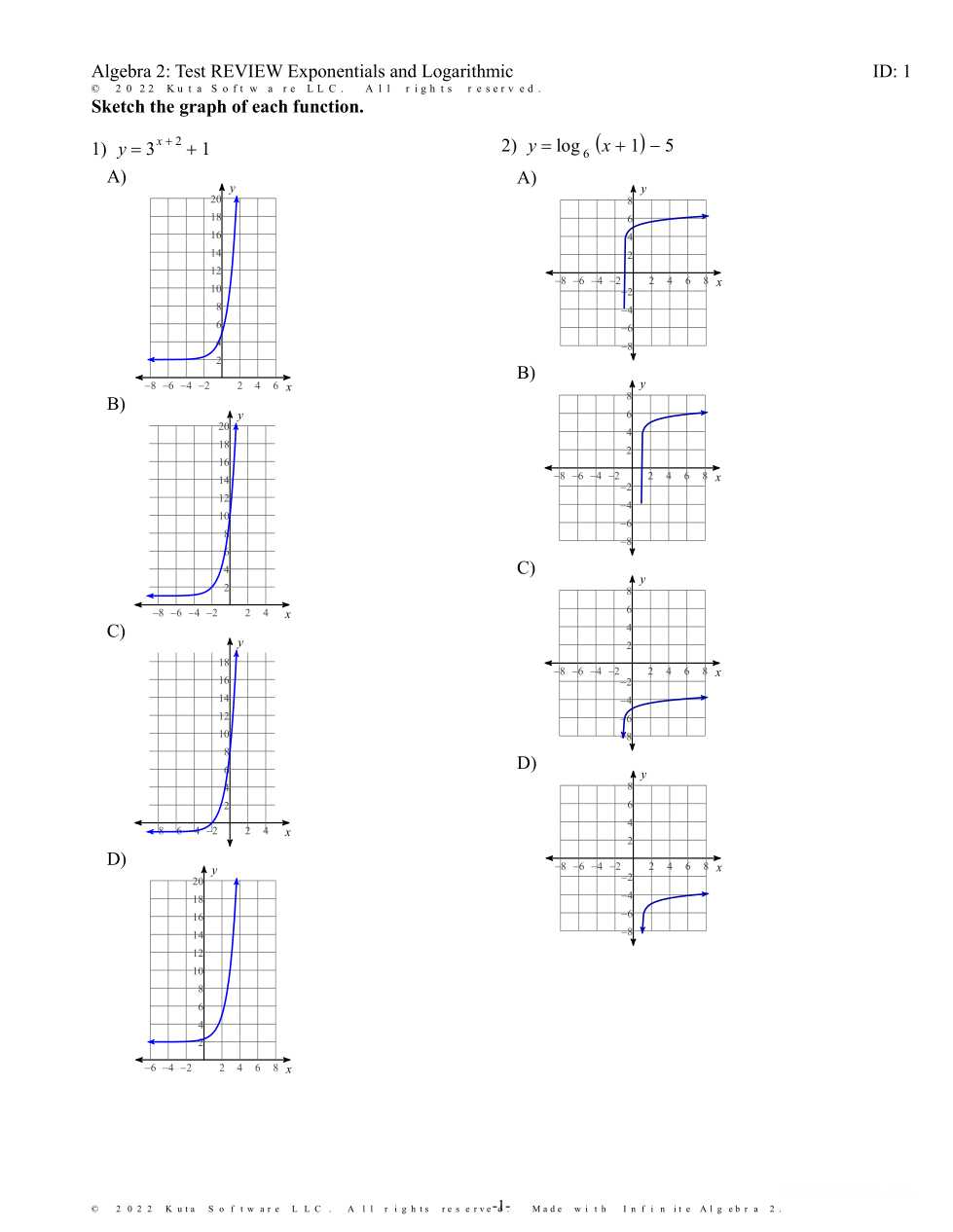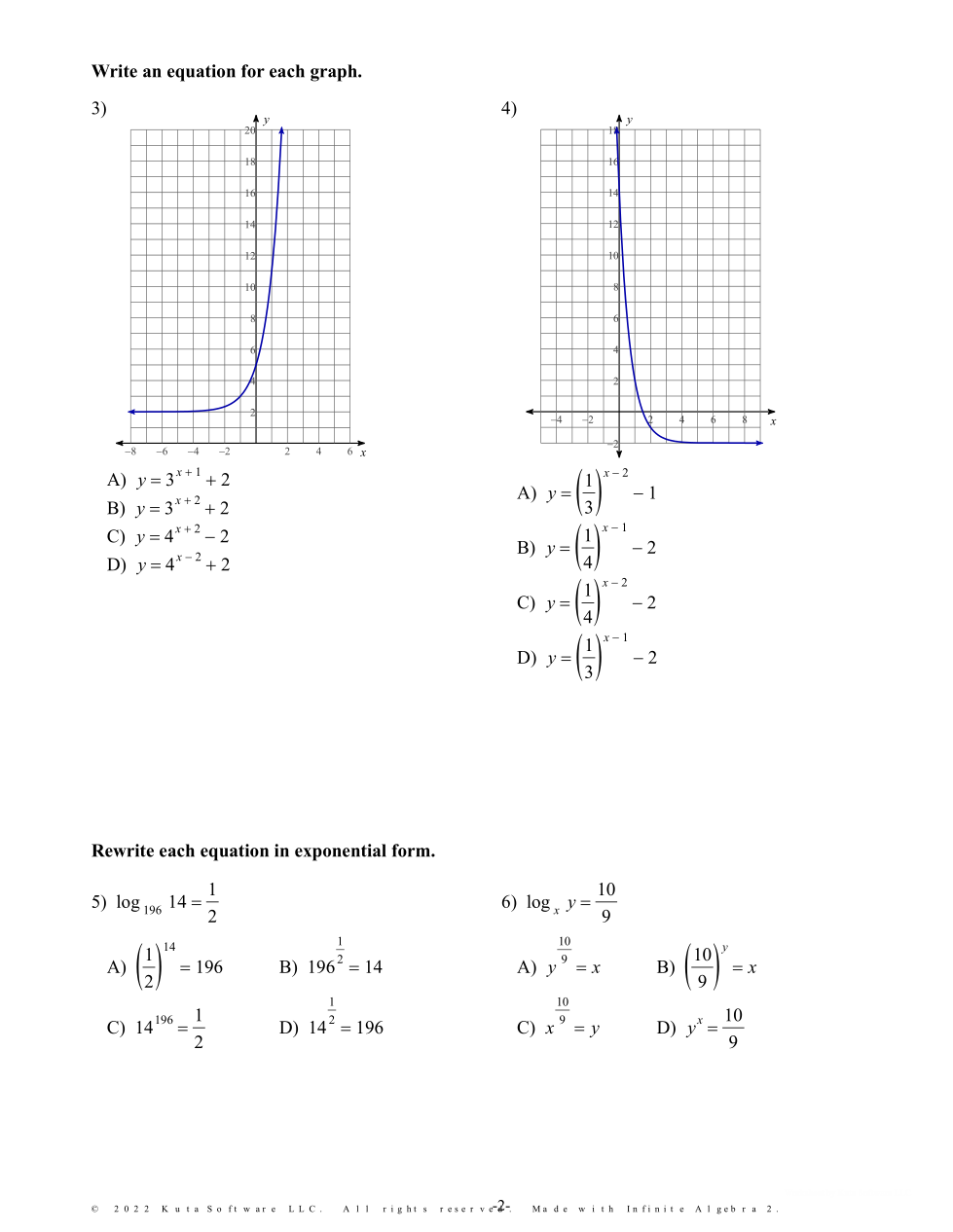 TEST REVIEW: Graphing, Converting, and Properties of Exponentials and Logs
