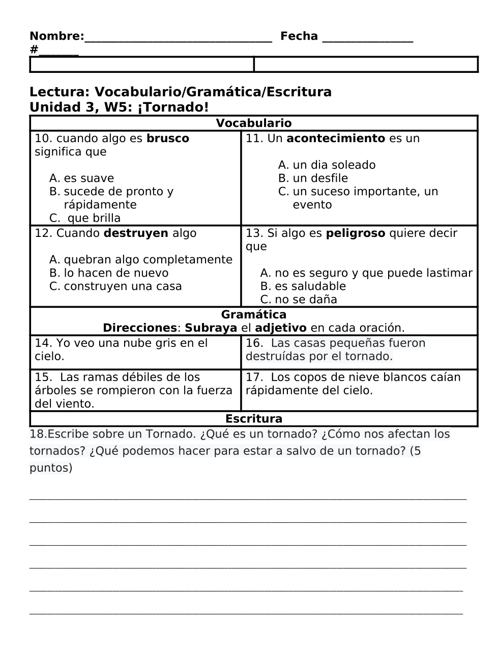 Escoge un adjetivo. Las casas pequeñas fueron destruídas por el tornado.
