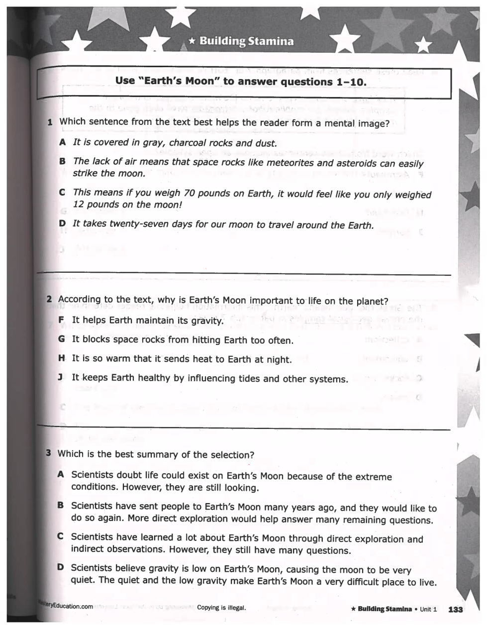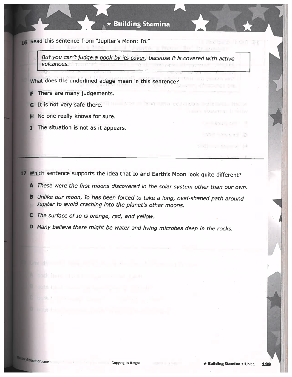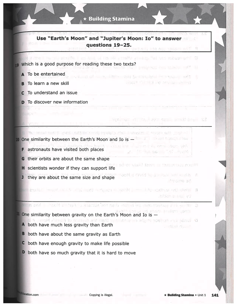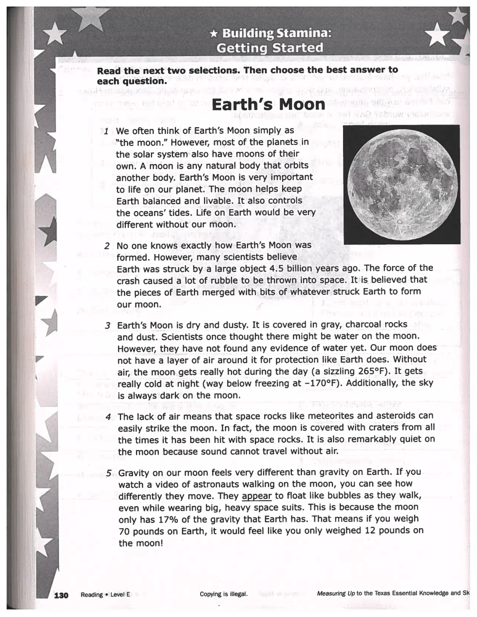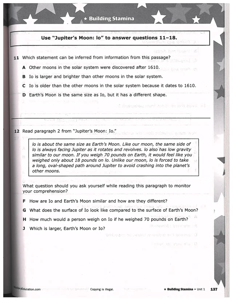 STAAR Style #1: Earth's Moon and Jupiter's Moon