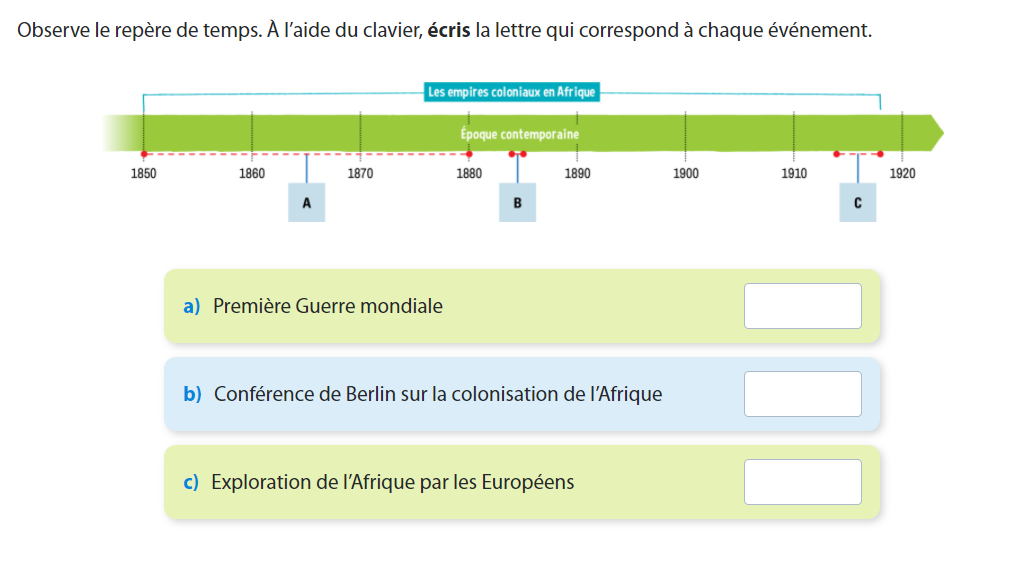 Écris la lettre qui correspond à l'évènement.
