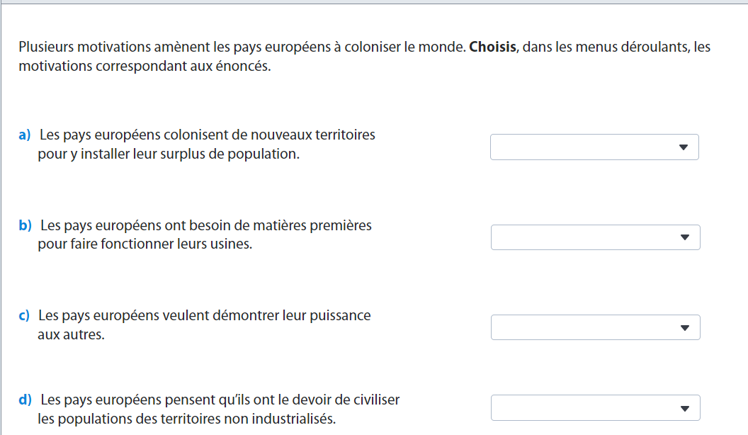 Il y a quatre motivations principales à la colonisation de l'Afrique. Quelles sont-elles ?