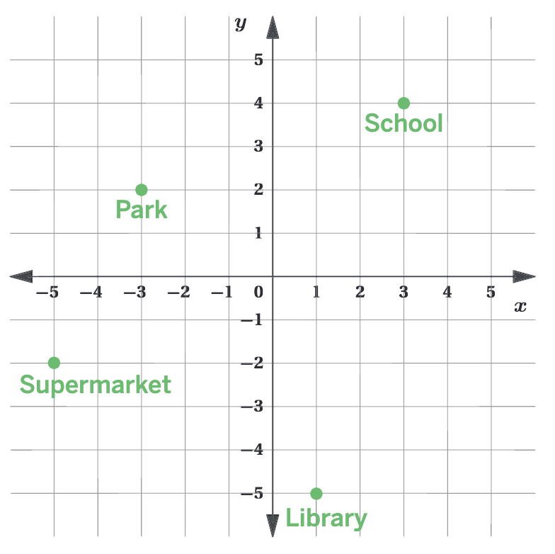 Here is a map of a town represented on a coordinate plane. What are the coordinates of the school?