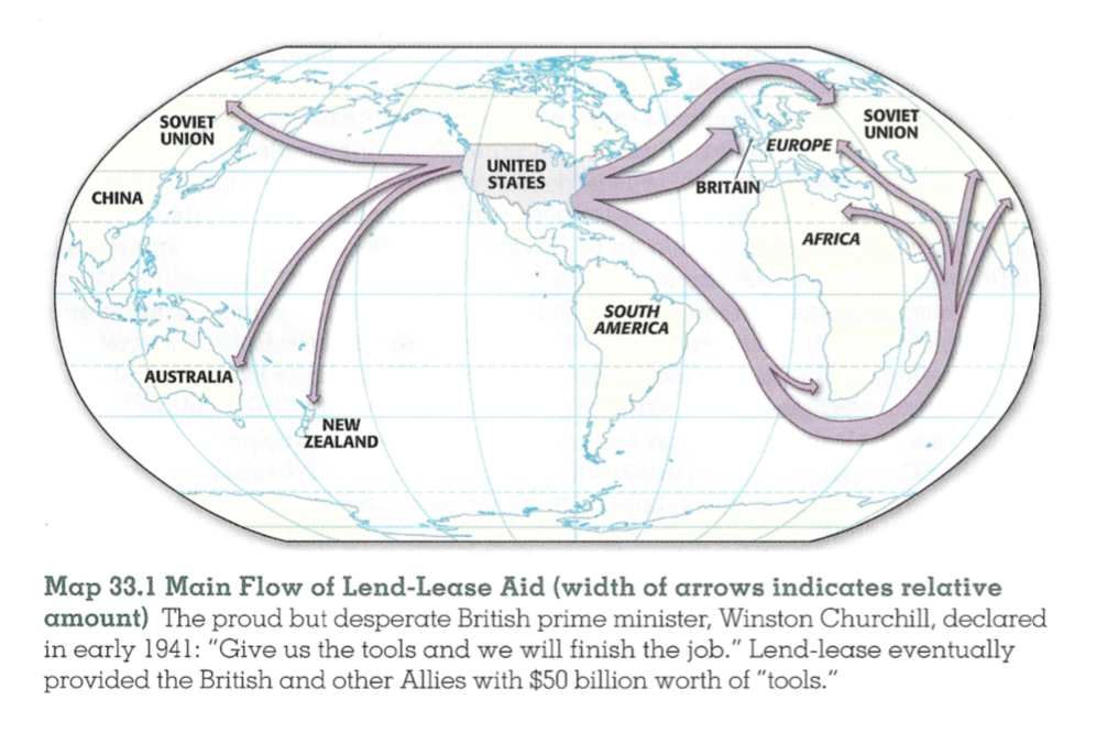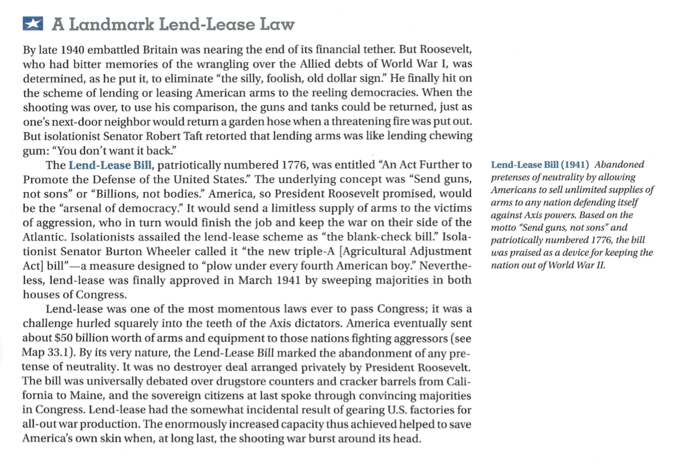 The passage indicates that the 1941 Lend-Lease Act was