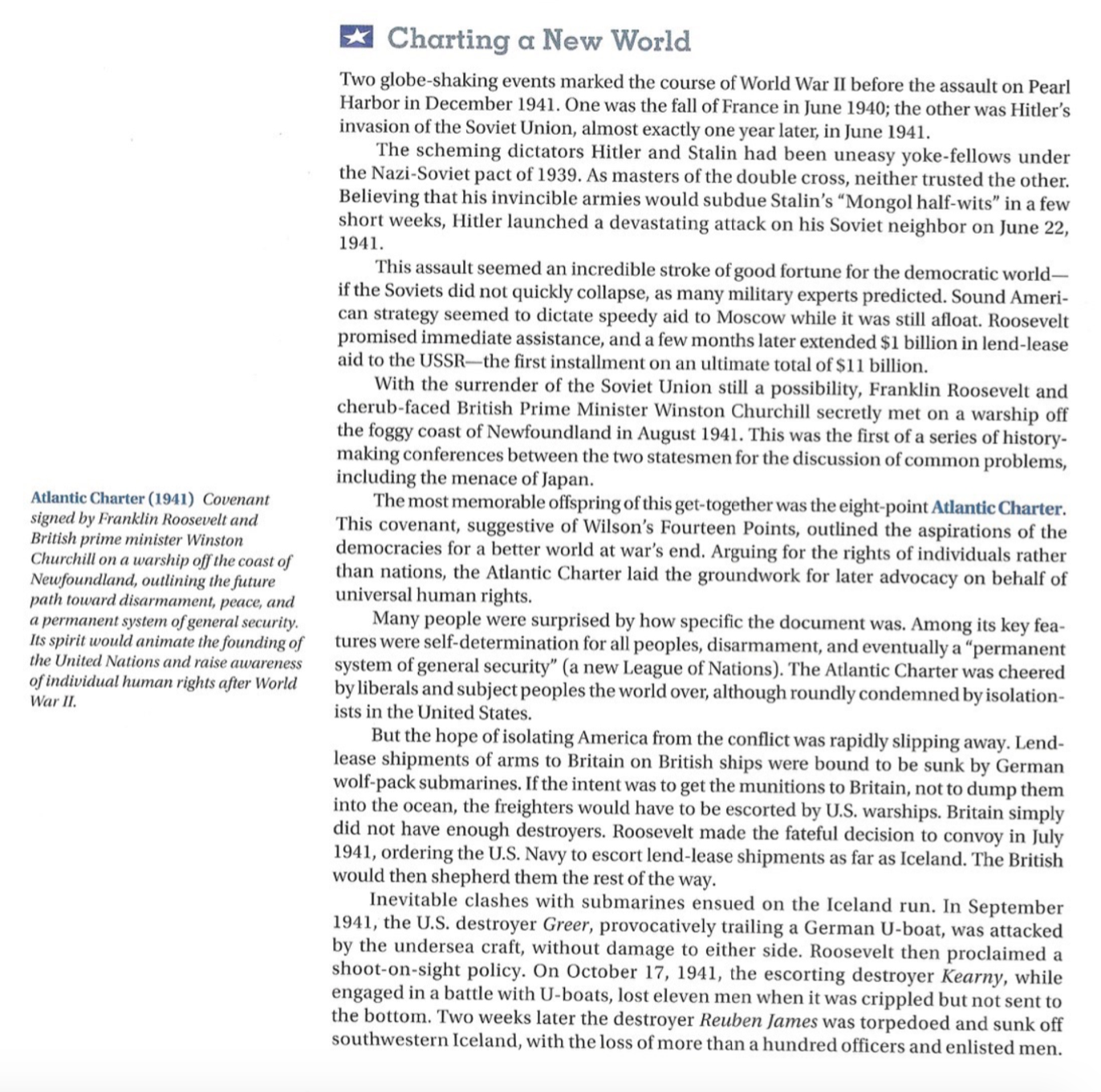 The Atlantic Charter signed by the United States and Britain in August 1941 called for