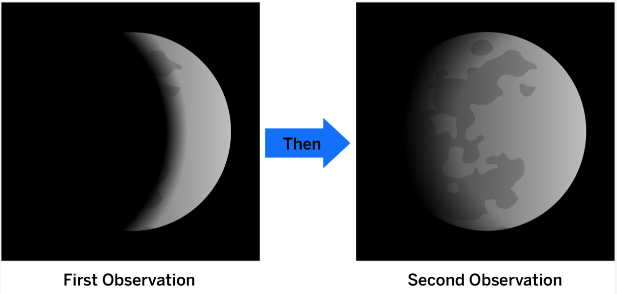 Astronomers made two observations of the Moon that were several days apart. Their observations are shown in the diagram above. The light part of the Moon appeared to get larger over time. Why did this happen?