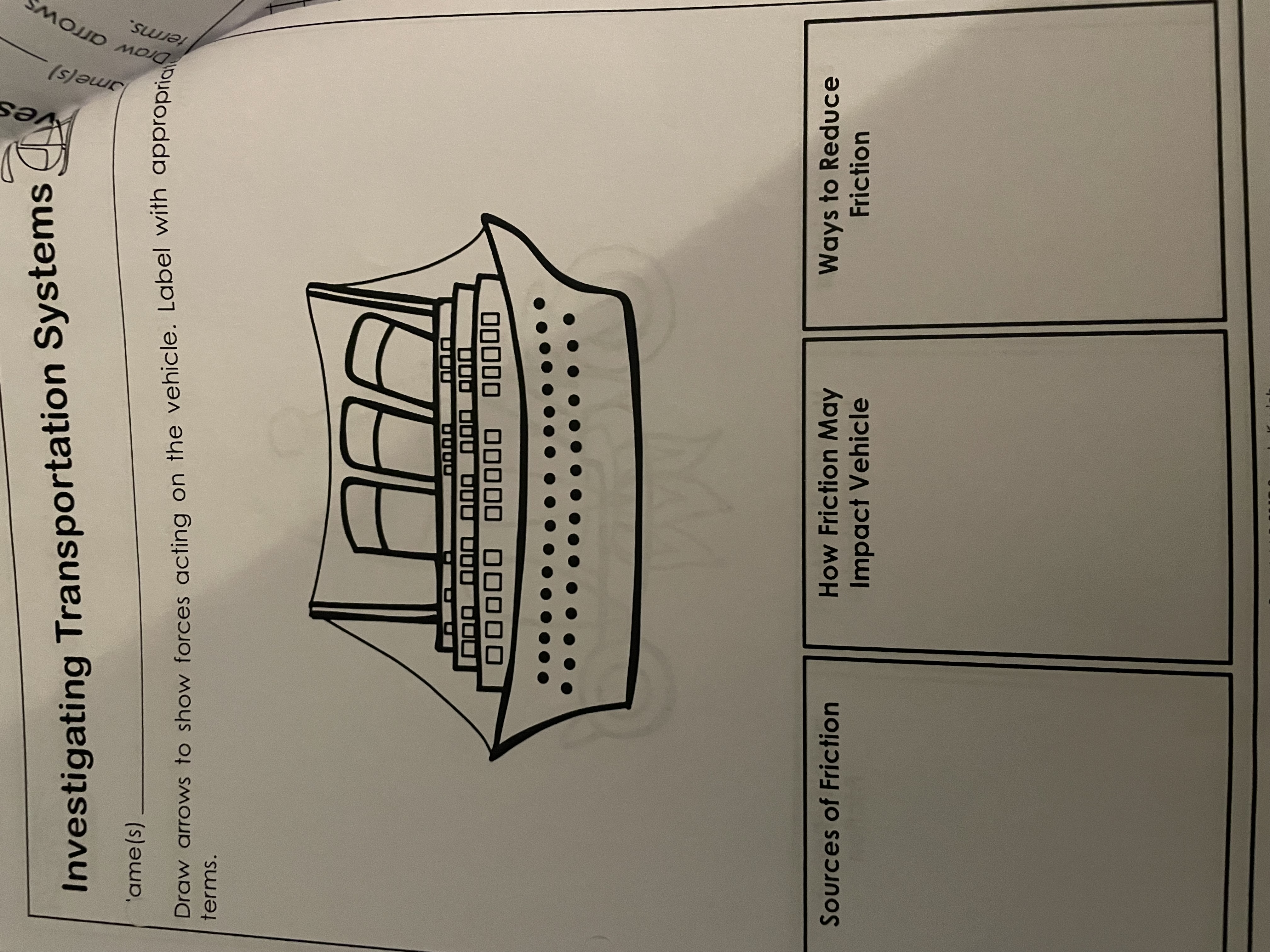 What force is acting on the vehicle and draw the arrow the way the force is acting?