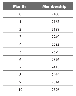 Predict the number of members after 15 months