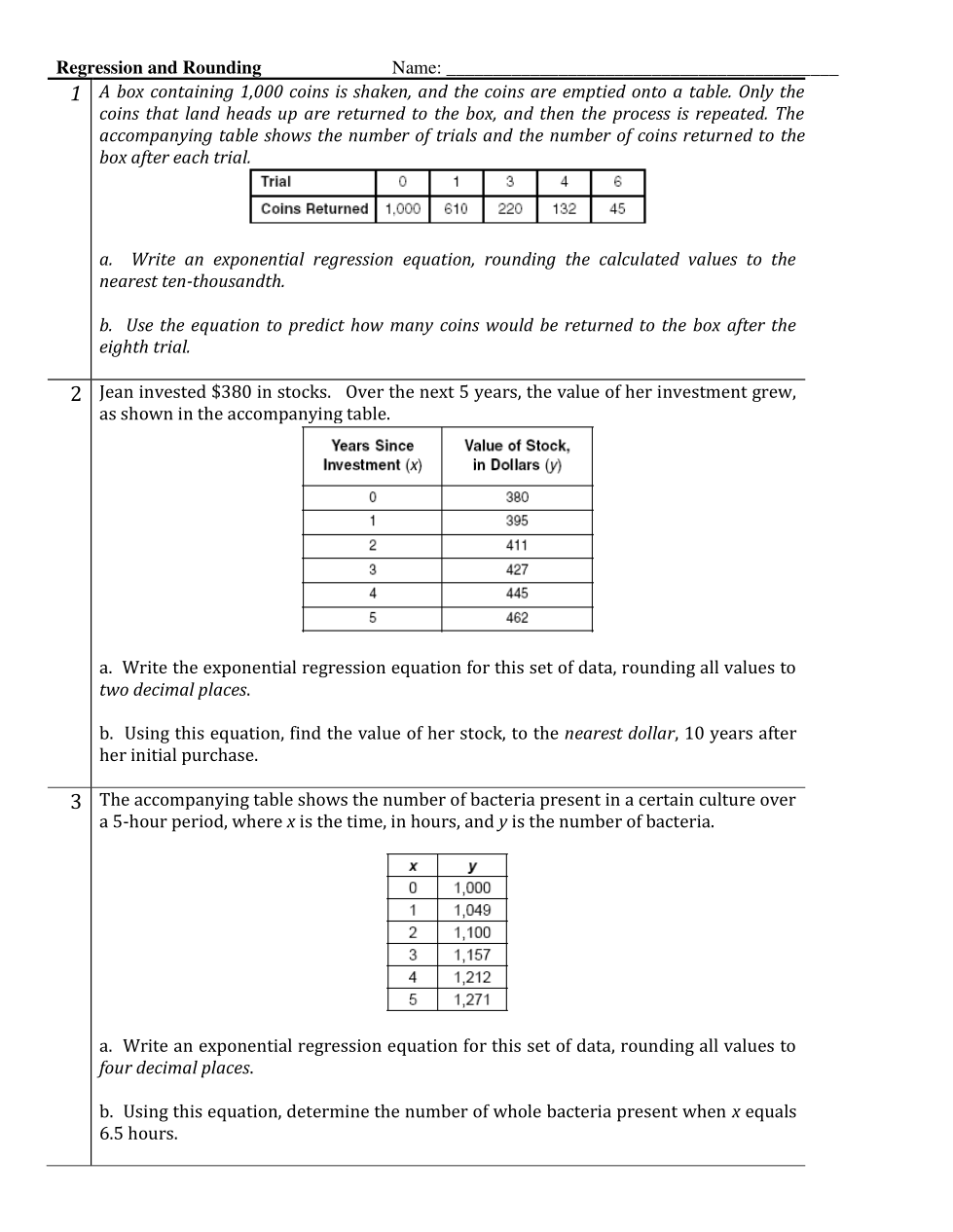 HW 7.5 Exponential Regression