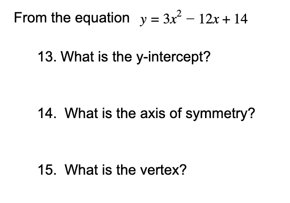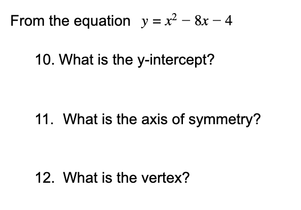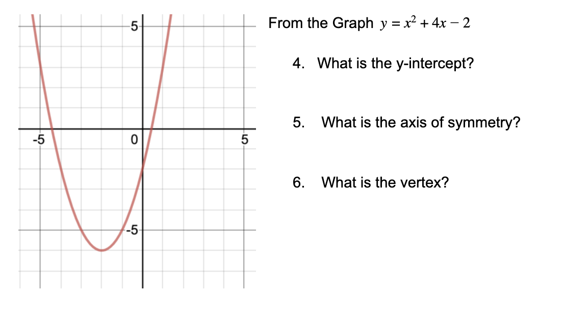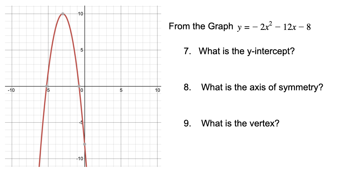 Label the graph of the quadratic with y - intercept, axis of symmetry, and vertex.
