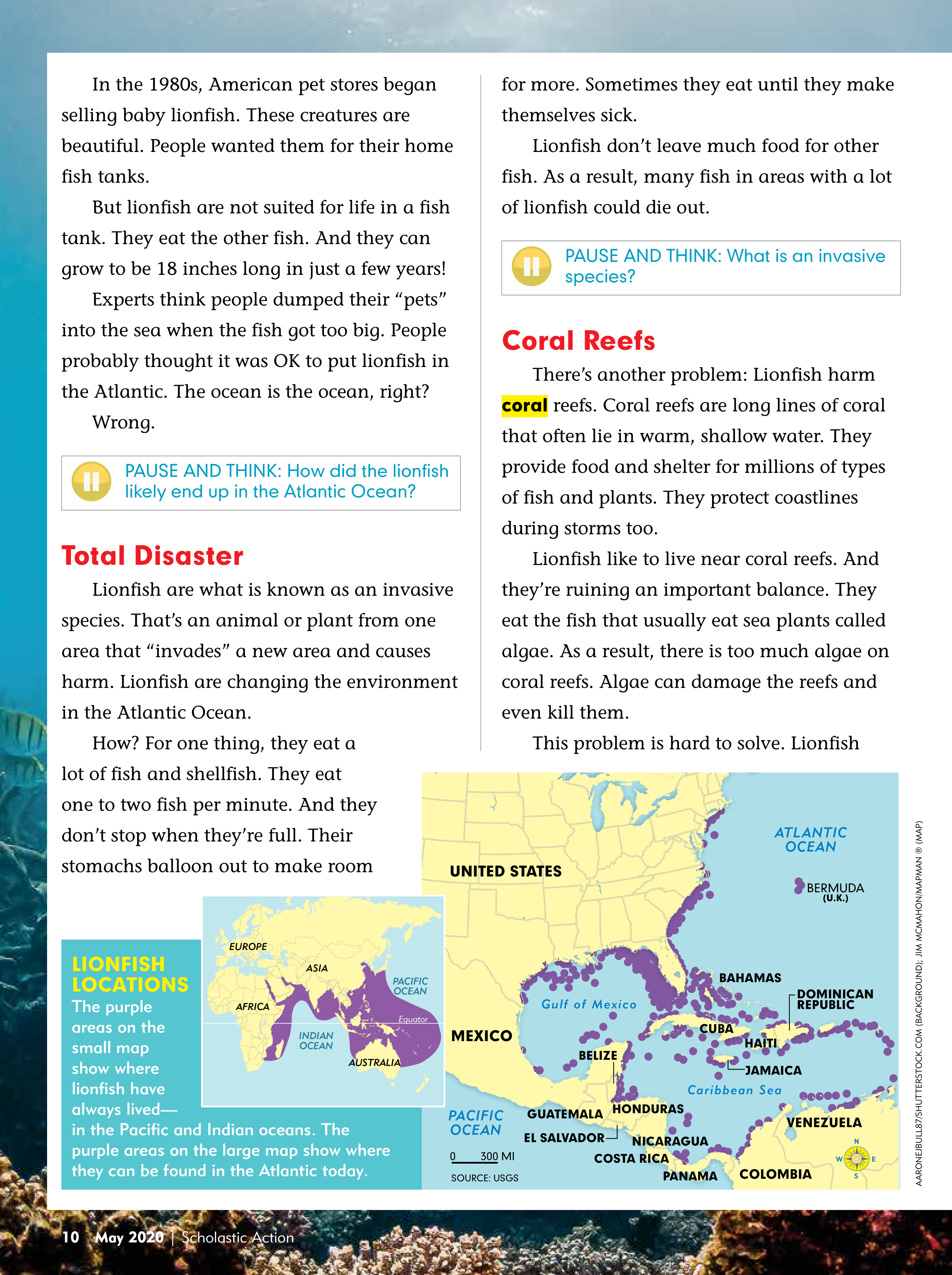 In your own words, explain how lionfish probably got into the Atlantic Ocean.