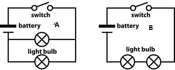 Using the space provided, draw a series circuit diagram with one battery, one light bulb, and an open switch. Be sure to use the proper symbols.