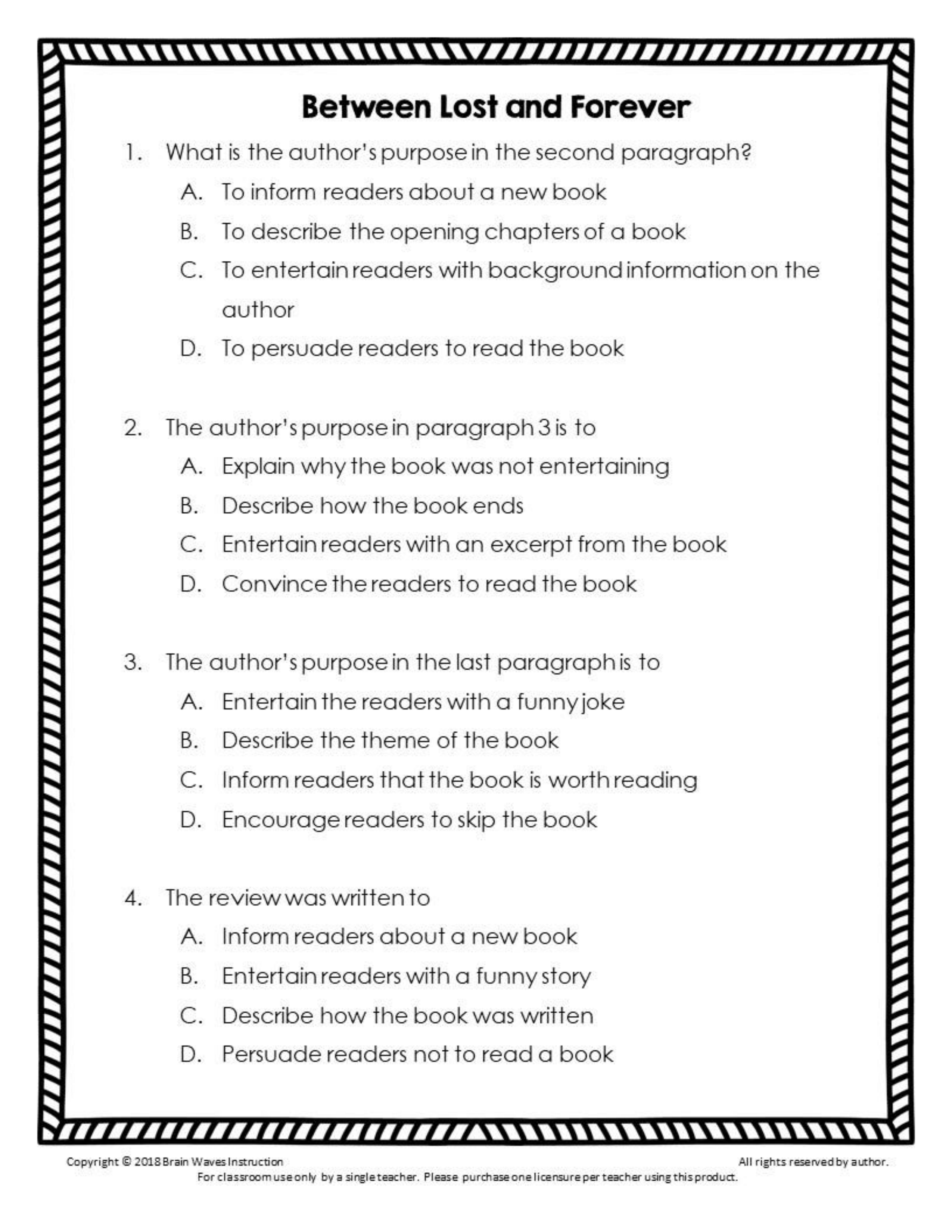 English Class--day 4 Author's Purpose Quiz cloned 4/5/2022