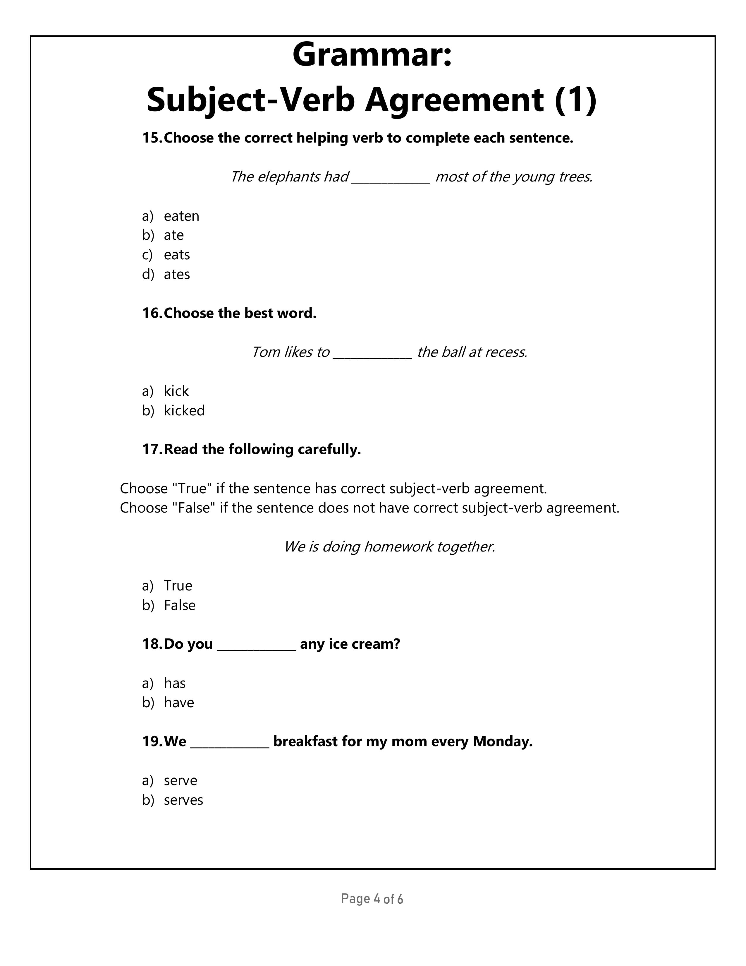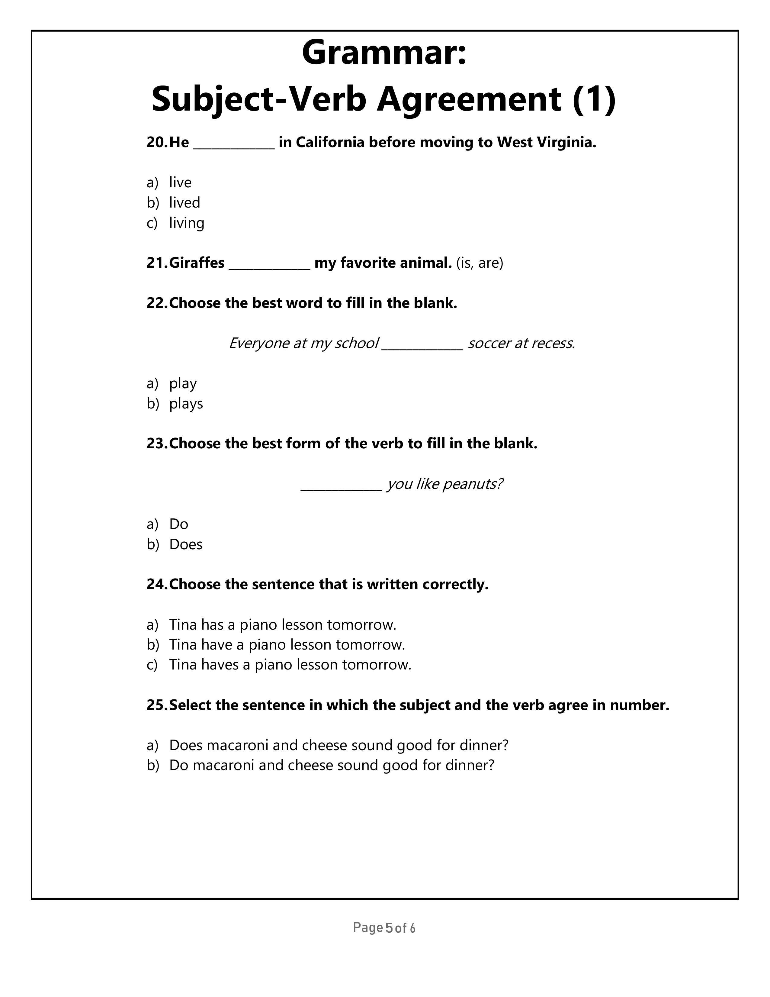 Subject & Verb Agreeement 2nd Half cloned 4/5/2022