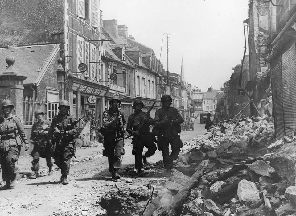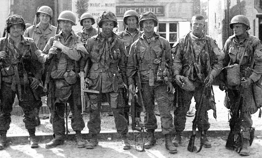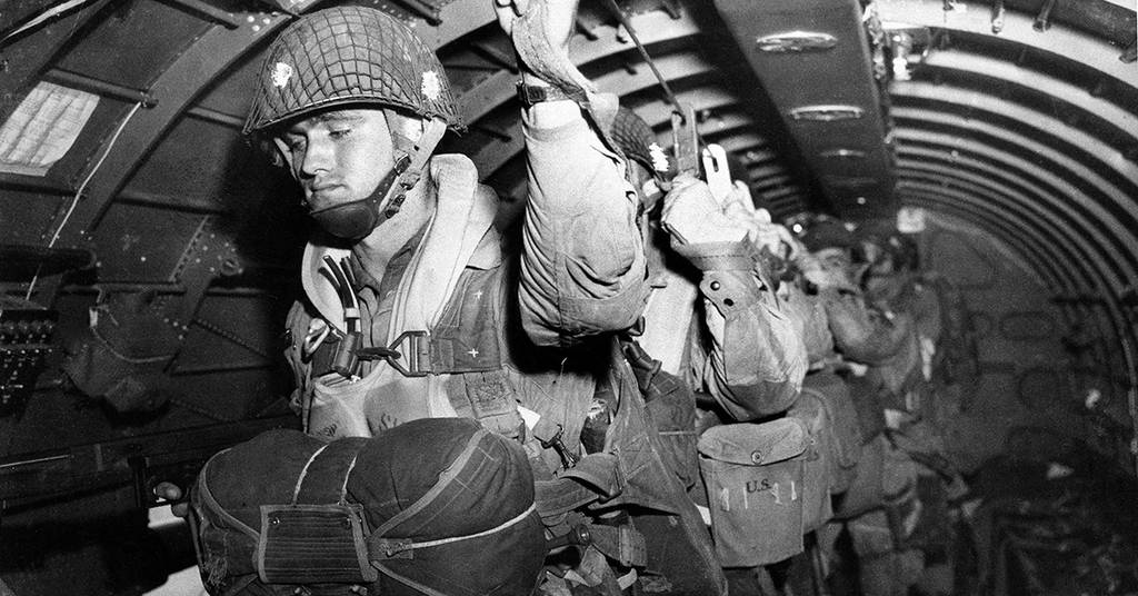 The invasion was preceded by a massive aerial bombardment of German defences. The Allies also sent in three airborne divisions, two American and one British, to prepare for the main assault by taking certain strategic points and by disrupting German communications. The first to land, at 1.30 a.m. on 6th June was the 101st Airbourne Division.