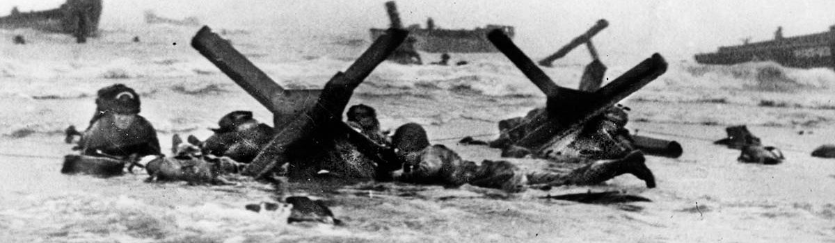 I made my way forward as best I could. My rifle jammed, so I picked up a carbine and got off a couple of rounds. We were shooting at something that seemed inconsequential. There was no way I was going to knock out a German concrete emplacement with a .30-caliber rifle. I was hit again, once in the left thigh, which broke my hipbone and a couple of times in my pack, and then a bullet severed my chin strap on my helmet. I worked my way up onto the beach, and staggered up against a wall, and collapsed there. The bodies of the other guys washed ashore, and I was one live body amongst many of my friends who were dead and, in many cases, blown to pieces.
