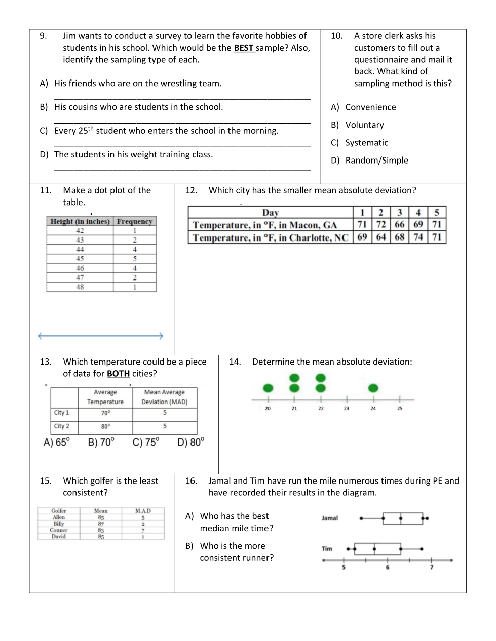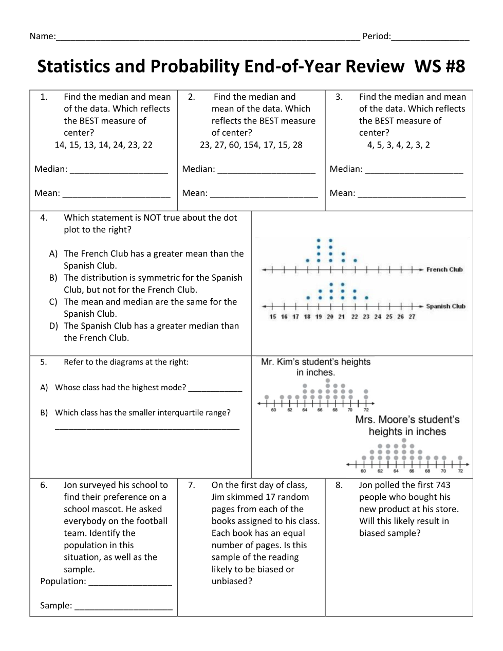 712LRIS WS #8 (Pink) Statistics and Probability Review