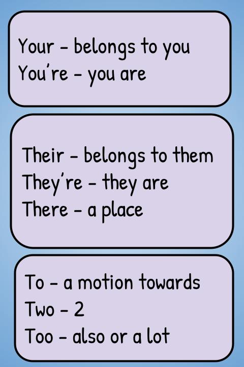 Your/you're There/their/they're Two/too/to