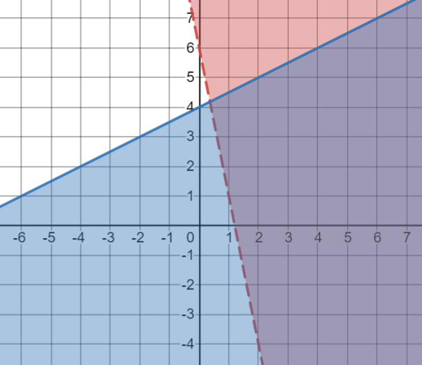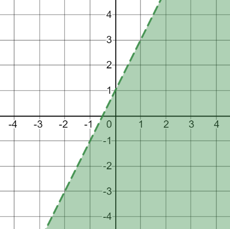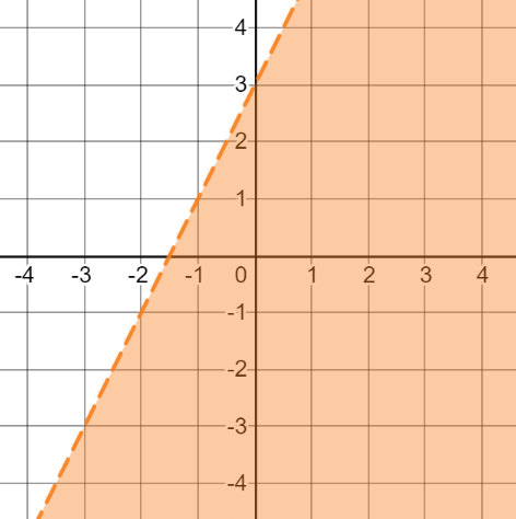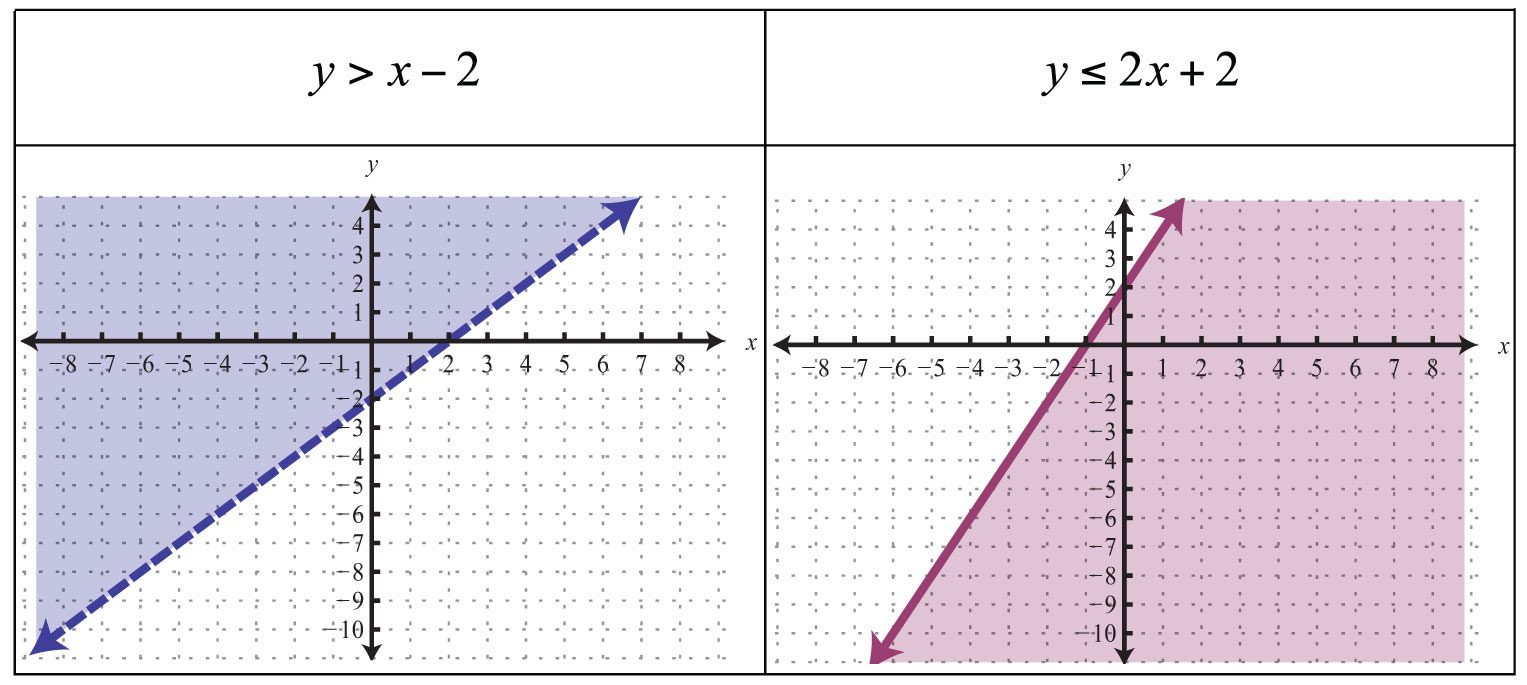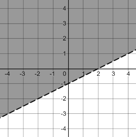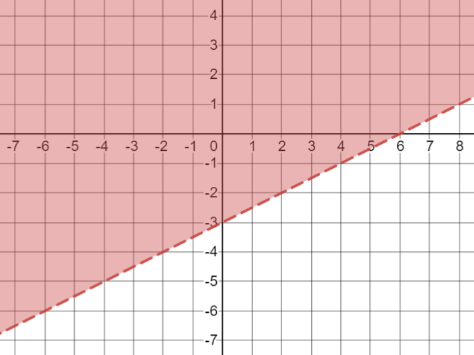 When given access to use desmos, you can simply type the entire inequality into desmos and it will graph it for you. Remember to keep in mind about dotted and solid lines.