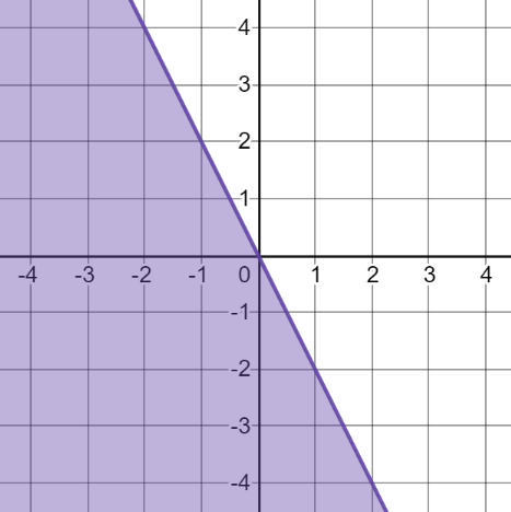 The purple coordinate is a solution since it is in both shaded regions and it's on the solid line.